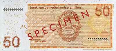Лицевая сторона банкноты Антильских островов номиналом 50 Гульденов Обратная сторона банкноты Антильских островов номиналом 50 Гульденов