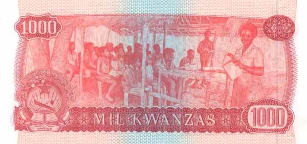 Лицевая сторона банкноты Анголы номиналом 1000 Кванз Обратная сторона банкноты Анголы номиналом 1000 Кванз