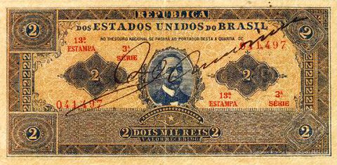 Лицевая сторона банкноты Бразилии номиналом 2 Мильрейса Обратная сторона банкноты Бразилии номиналом 2 Мильрейса
