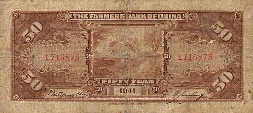 Лицевая сторона банкноты Китая номиналом 50 Фенов Обратная сторона банкноты Китая номиналом 50 Фенов