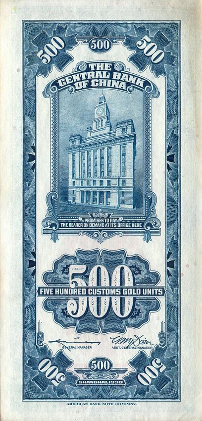 главная / банкноты стран мира / Китай / 500 Золотых Таможенных Единиц (1930)