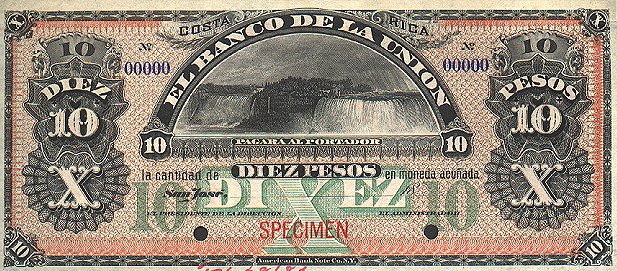 Лицевая сторона банкноты Коста-Рики номиналом 10 Песо Обратная сторона банкноты Коста-Рики номиналом 10 Песо