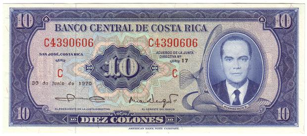 Лицевая сторона банкноты Коста-Рики номиналом 10 Колонов Обратная сторона банкноты Коста-Рики номиналом 10 Колонов