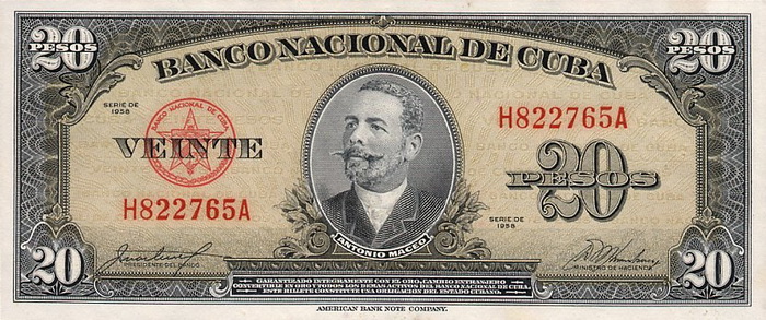 Лицевая сторона банкноты Кубы номиналом 20 Песо Обратная сторона банкноты Кубы номиналом 20 Песо