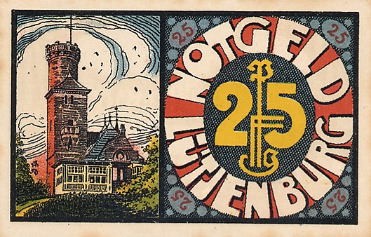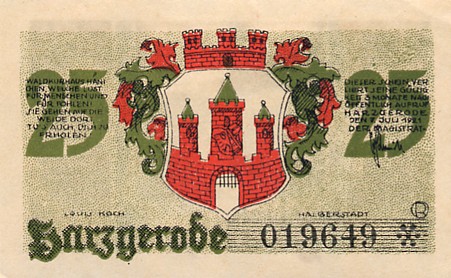 Лицевая сторона банкноты Германии номиналом 25 Пфеннигов Обратная сторона банкноты Германии номиналом 25 Пфеннигов