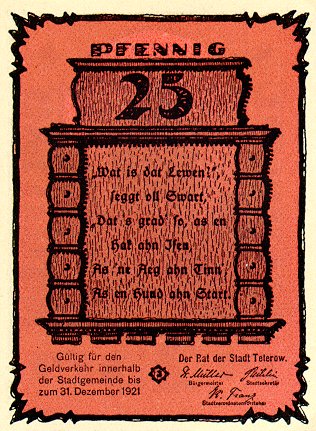 Лицевая сторона банкноты Германии номиналом 25 Пфеннигов