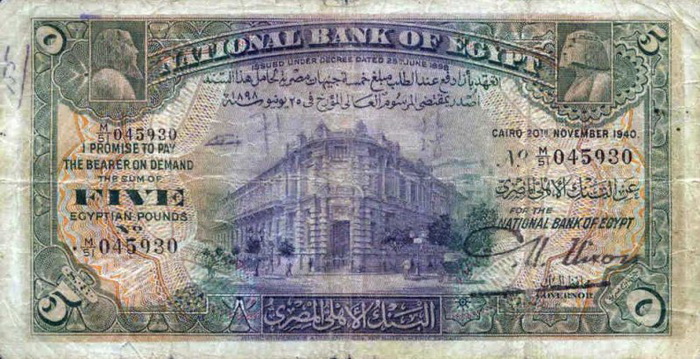 Лицевая сторона банкноты Египта номиналом 5 Пиастров Обратная сторона банкноты Египта номиналом 5 Пиастров