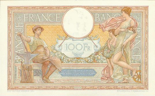 Лицевая сторона банкноты Франции номиналом 100 Франков Обратная сторона банкноты Франции номиналом 100 Франков
