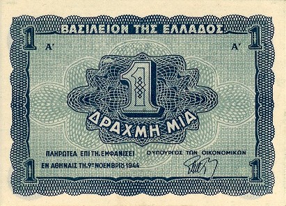 Лицевая сторона банкноты Греции номиналом 1 Драхма Обратная сторона банкноты Греции номиналом 1 Драхма