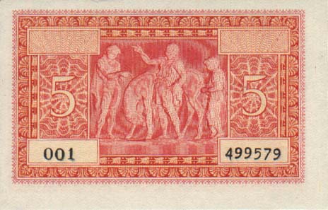 Лицевая сторона банкноты Греции номиналом 5 Драхм Обратная сторона банкноты Греции номиналом 5 Драхм