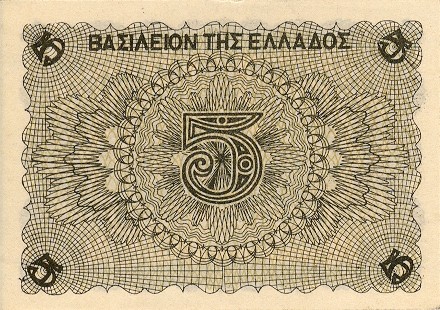Лицевая сторона банкноты Греции номиналом 5 Драхм Обратная сторона банкноты Греции номиналом 5 Драхм