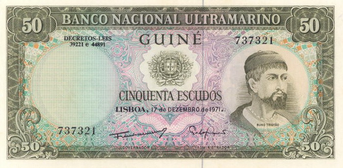Лицевая сторона банкноты Гвинеи-Бисау номиналом 50 Эскудо Обратная сторона банкноты Гвинеи-Бисау номиналом 50 Эскудо