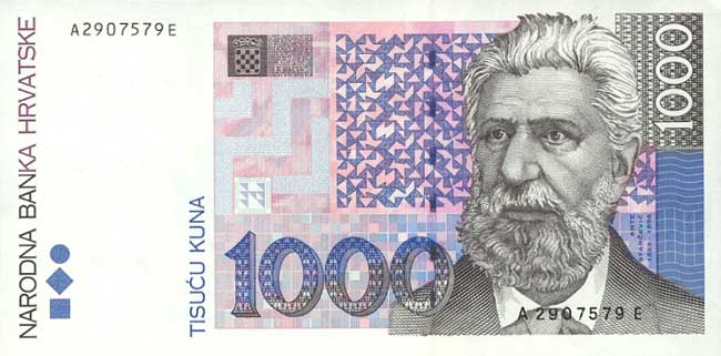 Лицевая сторона банкноты Хорватии номиналом 1000 Кун Обратная сторона банкноты Хорватии номиналом 1000 Кун