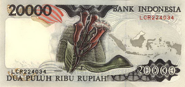 Лицевая сторона банкноты Индонезии номиналом 20000 Рупий Обратная сторона банкноты Индонезии номиналом 20000 Рупий