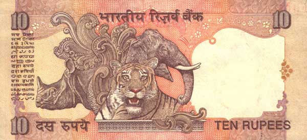 Лицевая сторона банкноты Индии номиналом 10 Рупий Обратная сторона банкноты Индии номиналом 10 Рупий