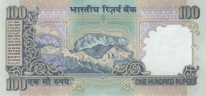 Лицевая сторона банкноты Индии номиналом 100 Рупий Обратная сторона банкноты Индии номиналом 100 Рупий