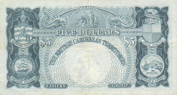 Лицевая сторона банкноты Сент-Китс и Невис номиналом 5 Долларов Обратная сторона банкноты Сент-Китс и Невис номиналом 5 Долларов
