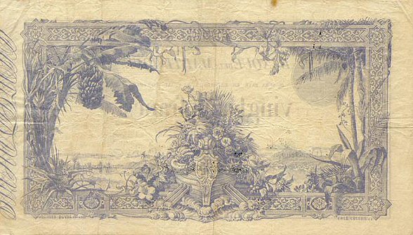 Лицевая сторона банкноты Мартиники номиналом 25 Франков Обратная сторона банкноты Мартиники номиналом 25 Франков