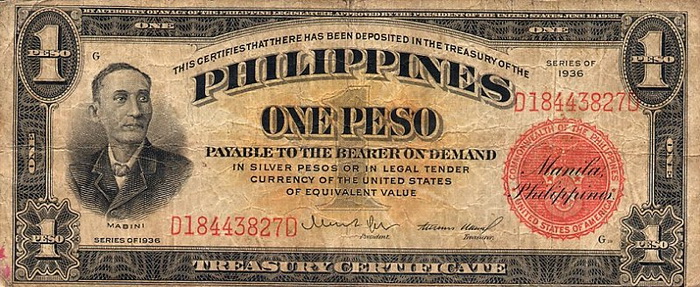 Лицевая сторона банкноты Филиппин номиналом 1 Песо Обратная сторона банкноты Филиппин номиналом 1 Песо
