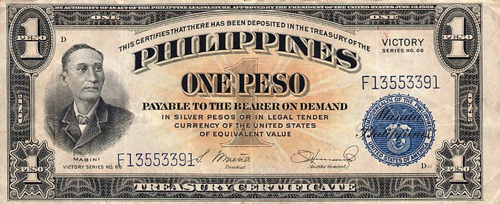 Лицевая сторона банкноты Филиппин номиналом 1 Песо Обратная сторона банкноты Филиппин номиналом 1 Песо