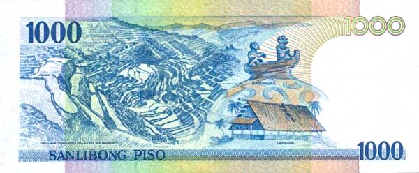 Лицевая сторона банкноты Филиппин номиналом 1000 Писо Обратная сторона банкноты Филиппин номиналом 1000 Писо