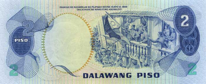 Лицевая сторона банкноты Филиппин номиналом 2 Писо Обратная сторона банкноты Филиппин номиналом 2 Писо