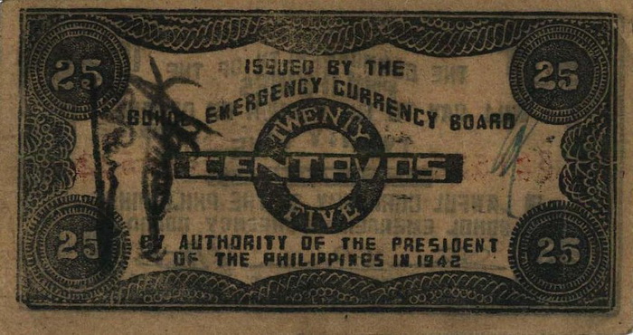 Лицевая сторона банкноты Филиппин номиналом 25 Сентаво Обратная сторона банкноты Филиппин номиналом 25 Сентаво