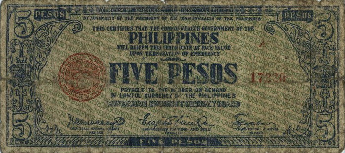 Лицевая сторона банкноты Филиппин номиналом 5 Песо