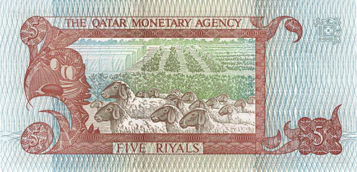 Лицевая сторона банкноты Катара номиналом 5 Риялов Обратная сторона банкноты Катара номиналом 5 Риялов