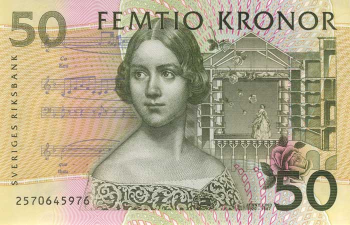 Лицевая сторона банкноты Швеции номиналом 50 Крон Обратная сторона банкноты Швеции номиналом 50 Крон