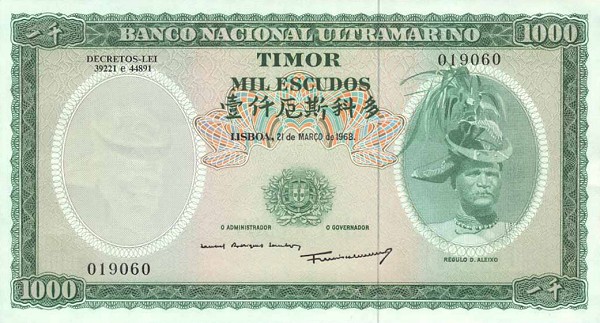 Лицевая сторона банкноты Восточного Тимора номиналом 1000 Эскудо Обратная сторона банкноты Восточного Тимора номиналом 1000 Эскудо