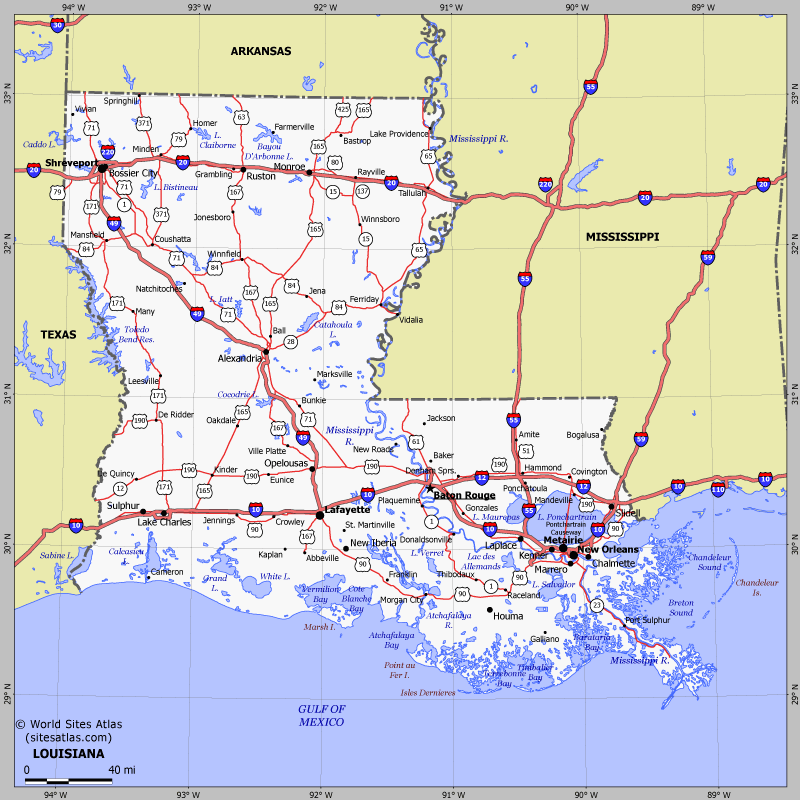 главная / карты штатов США / карты Луизианы / Луизиана / подробная карта Луизианы