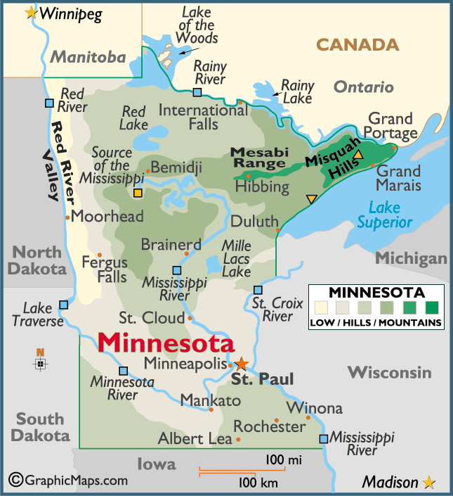 Подробная карта МиннесотыМиннесота (Minnesota), США (United States)Северная Америка Столица Миннесоты: Сент-Пол