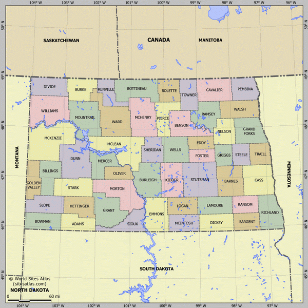 Карта деления Северной Дакоты